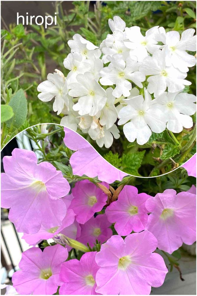 白いバーベナとピンクのペチュニア