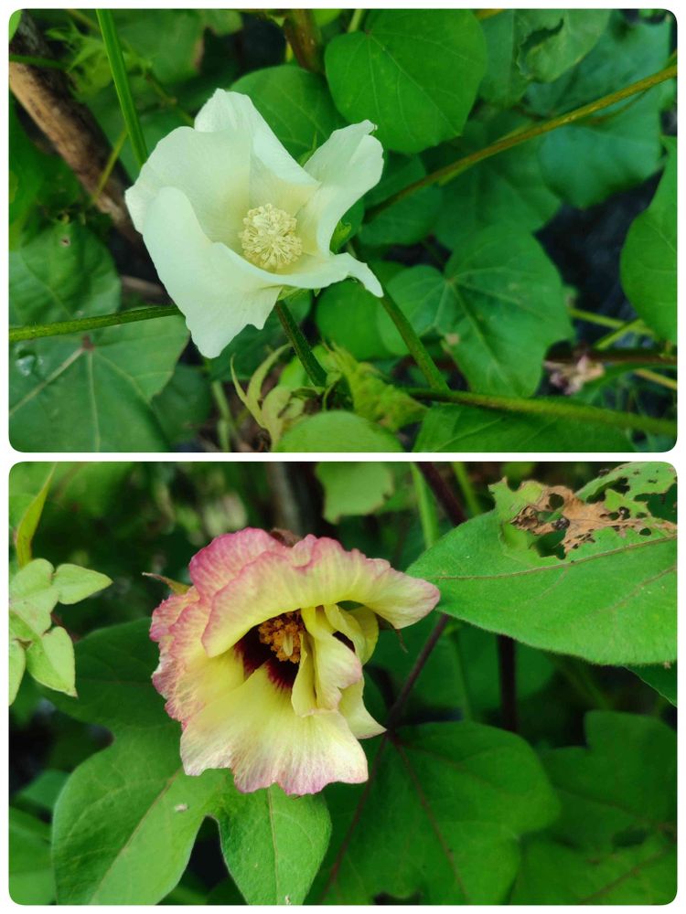 どちらが白色の綿の花だろう?