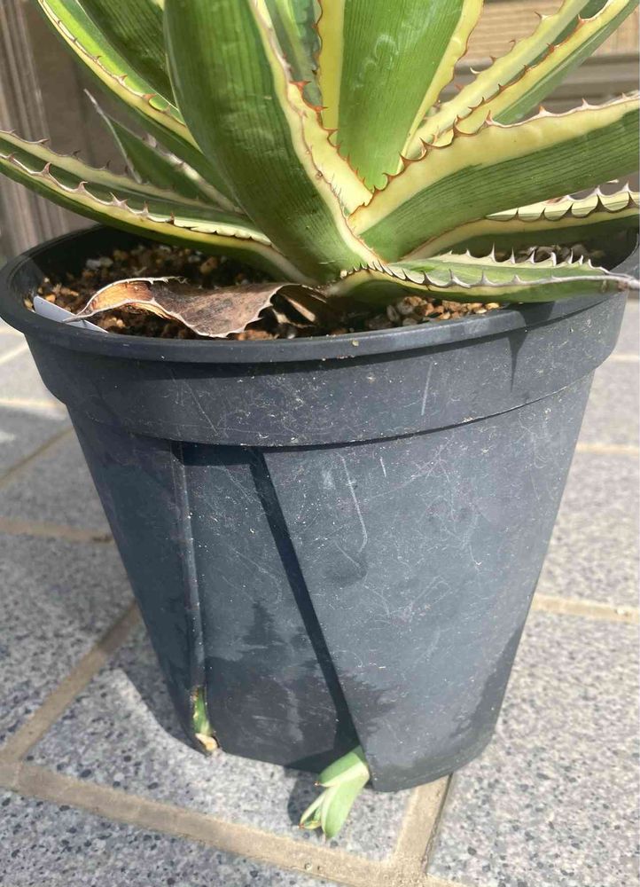 スリット鉢のスリットから,子株が2株こんにちは?やめてくれ‼️