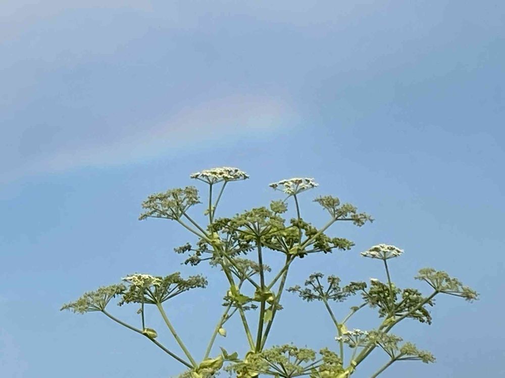 雷が鳴ってパラパラと降ったあと、サイクリングロードを散歩中に虹を見つけました。