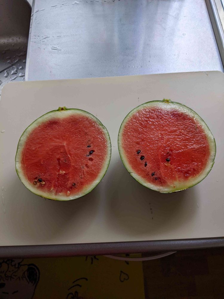 今年始めてプランター栽培の極小小玉スイカ714㌘は〜