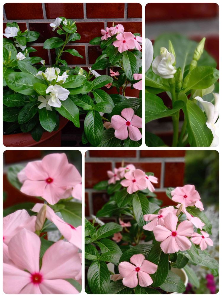 柔らかな良い色合いのニチニチソウですね🤍💗💚