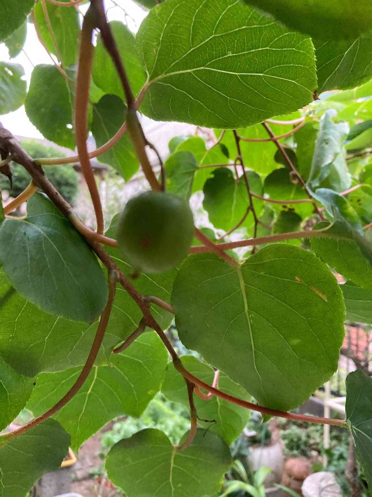 もともと日除けに植えたんだけど、毎年花は咲くのになかなか実がならないねぇ〜と気長に待ってました。今年はバッサリ切っちゃってたんだけど、1つだけできました。これから来る台風で、落ちないと良いけど💦
