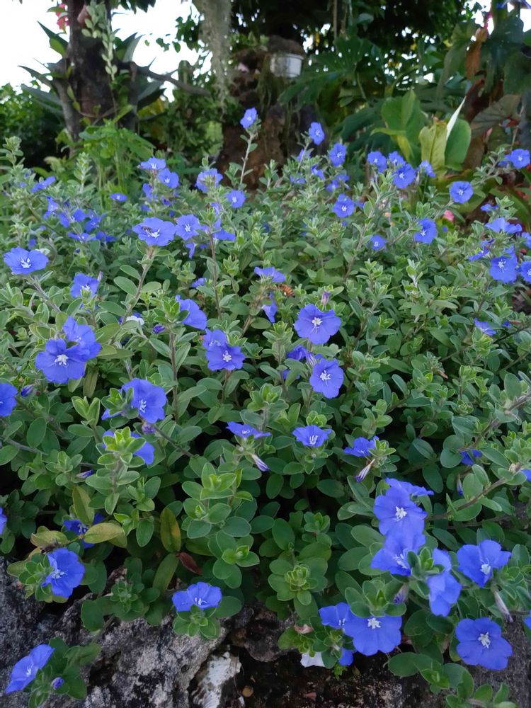 早朝から(毎日)一番乗りで満開🔵のアメリカンブルーさん!
