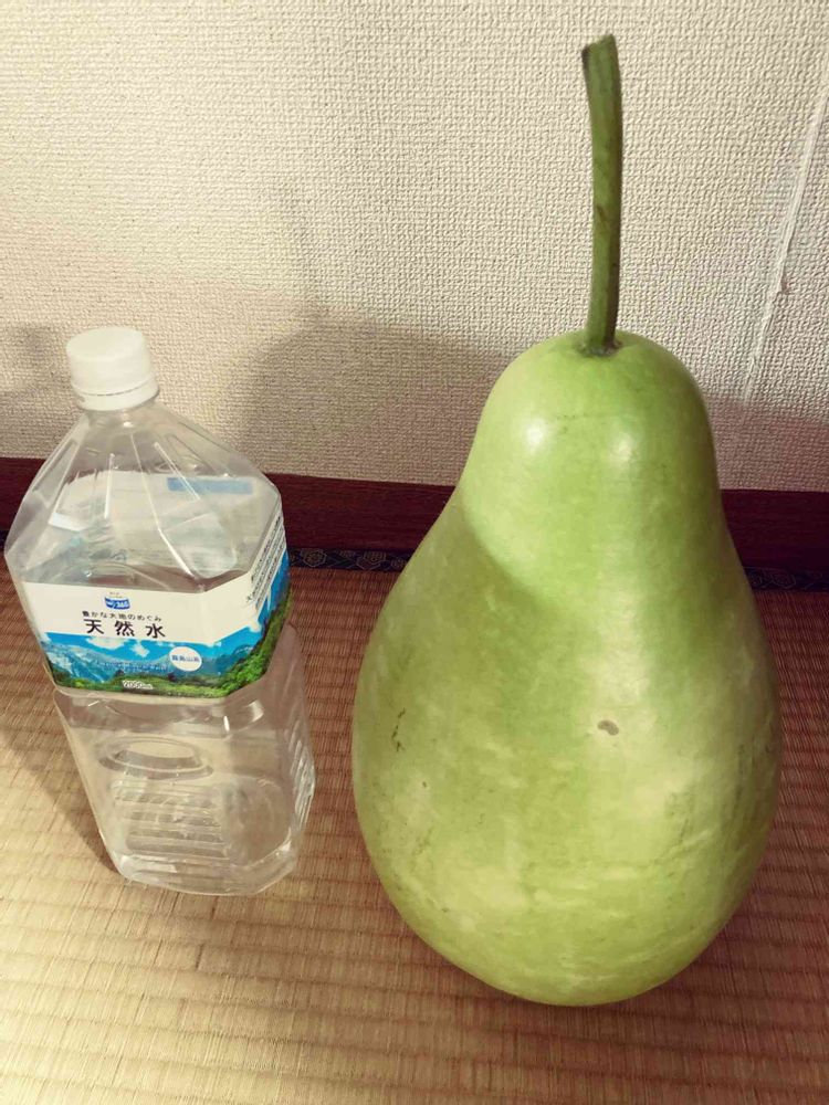 くれた人もなんだかわからない貰い物。美しい、洋梨のようなフォルムだけど、めちゃくちゃでかい!
