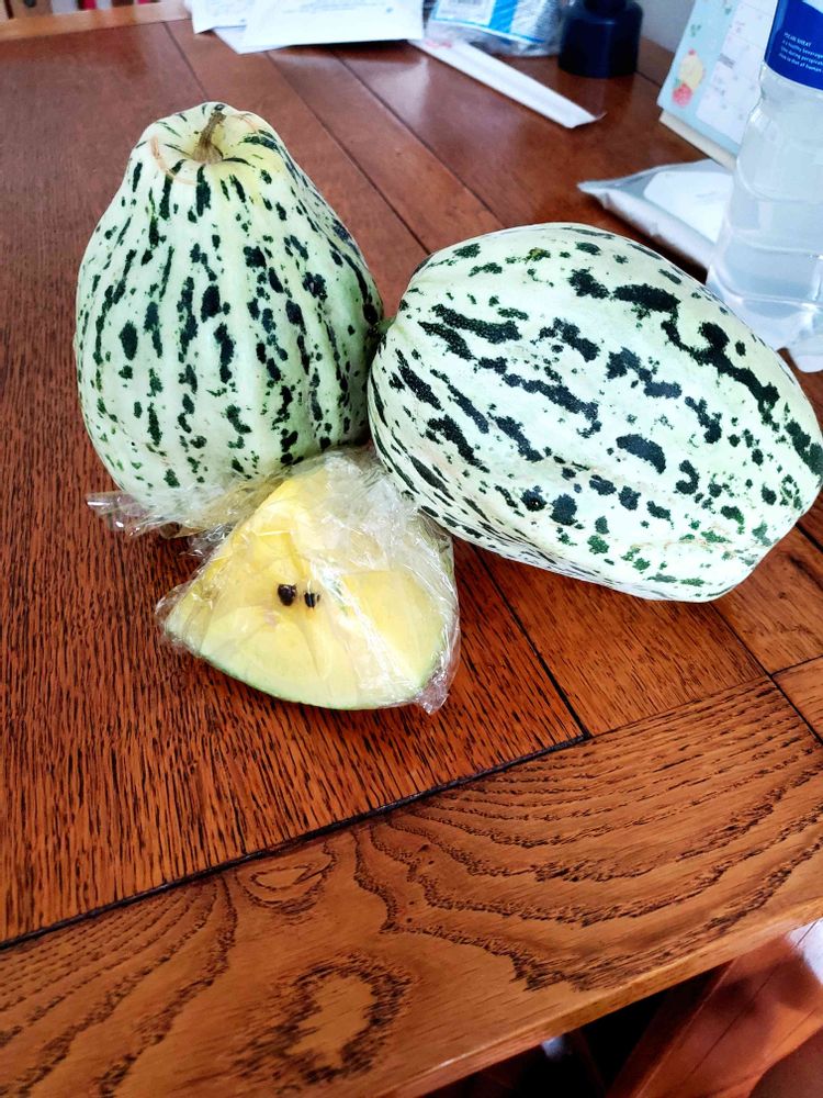 近所のお婆ちゃんにテボで捕まえたウナギを3匹お裾分けしたら、大量の落花生とスイカと、謎のウリをもらった。