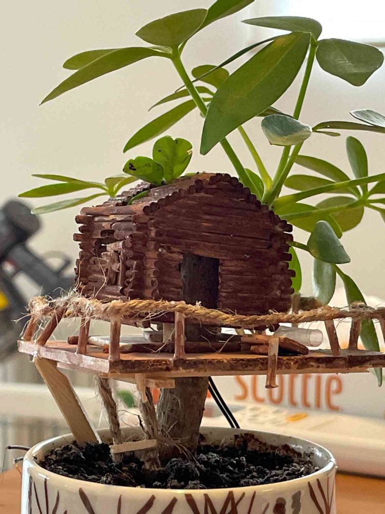「トムソーヤの冒険」って アニメの影響で、ツリーハウスの虜に。 ハックの家にどんばまり😁 ミニチュアツリーハウス製作してます。 内装凝りすぎて、ややドールハウスに 近いです。