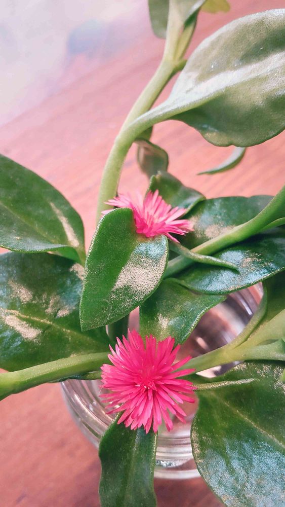 たくさん伸びたベビーサンローズもカットして少しだけ瓶にさしておいたら、今朝2つもお花が咲いていました✨