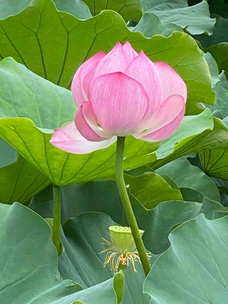 スズメが波乗りみたいに、葉っぱの上に乗っていたのが、面白かったです🪷