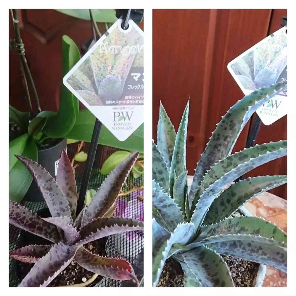 日光バンバン当てて育てると紫色係り、室内ですと2日でグリーンになりました。