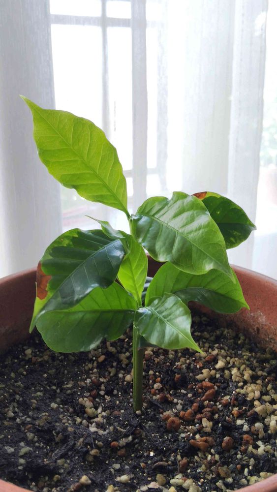 うちのコーヒーの木、3ヶ月前くらい?に摘芯したのを挿し芽にした子が元気に葉っぱを増やしてます🌱🌿