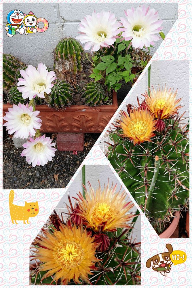 たまたま覗きに行くと2種類のサボテンが咲いてるなんてラッキーやね😆💕