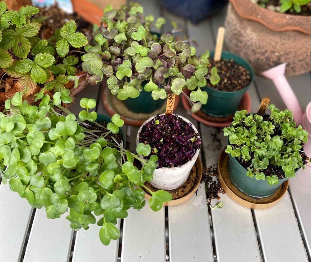 バルコニー/ベランダ,ルビーカイワレ大根栽培,紫カイワレ大根栽培の投稿画像