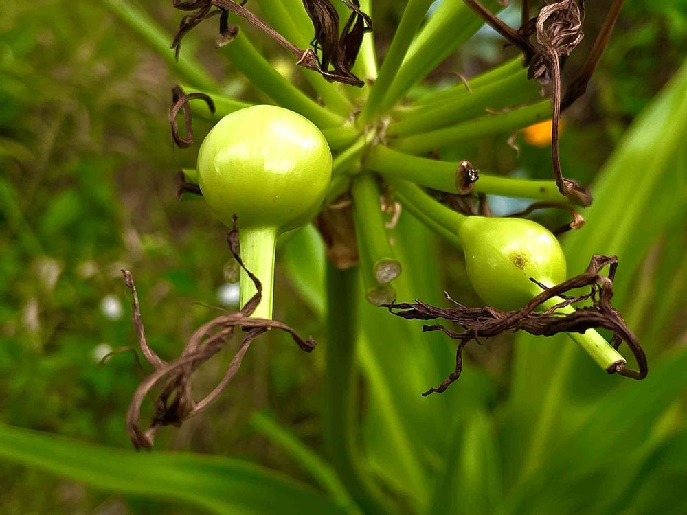 受粉が成立すると、子房が肥大して球形の果実になる。種子はどうなるかなぁ❓