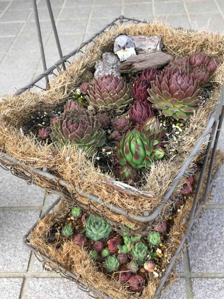 ワイヤーの小物入れにセンペル寄植え〜😋🎶