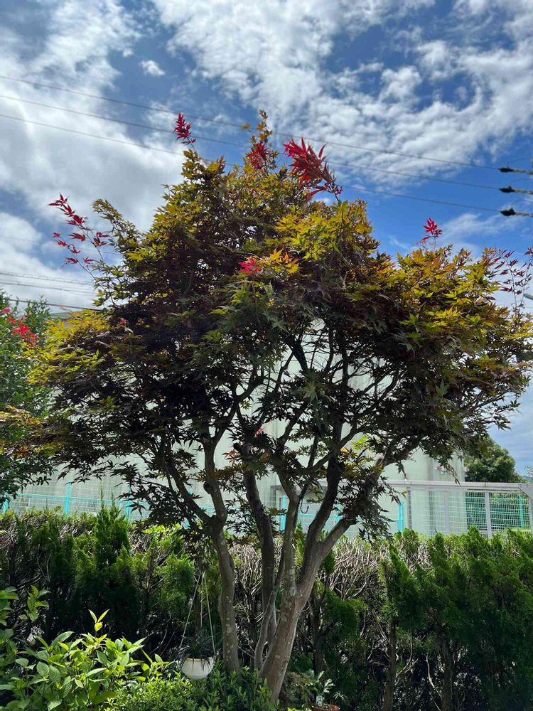 我が家の庭の紅葉🍁の 先っちょが この暑さにかかわらず 赤くなり始めました😃