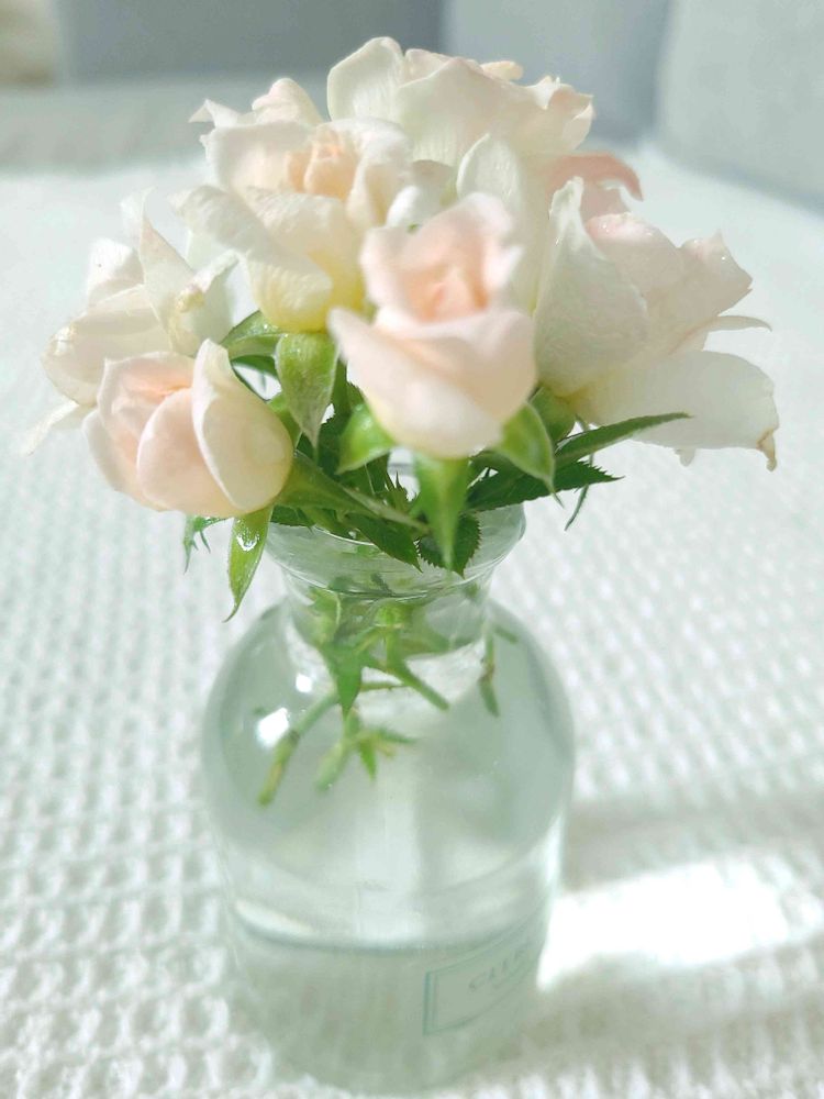 あっ、ミニ薔薇ちゃんのお花…とっても優しい色で