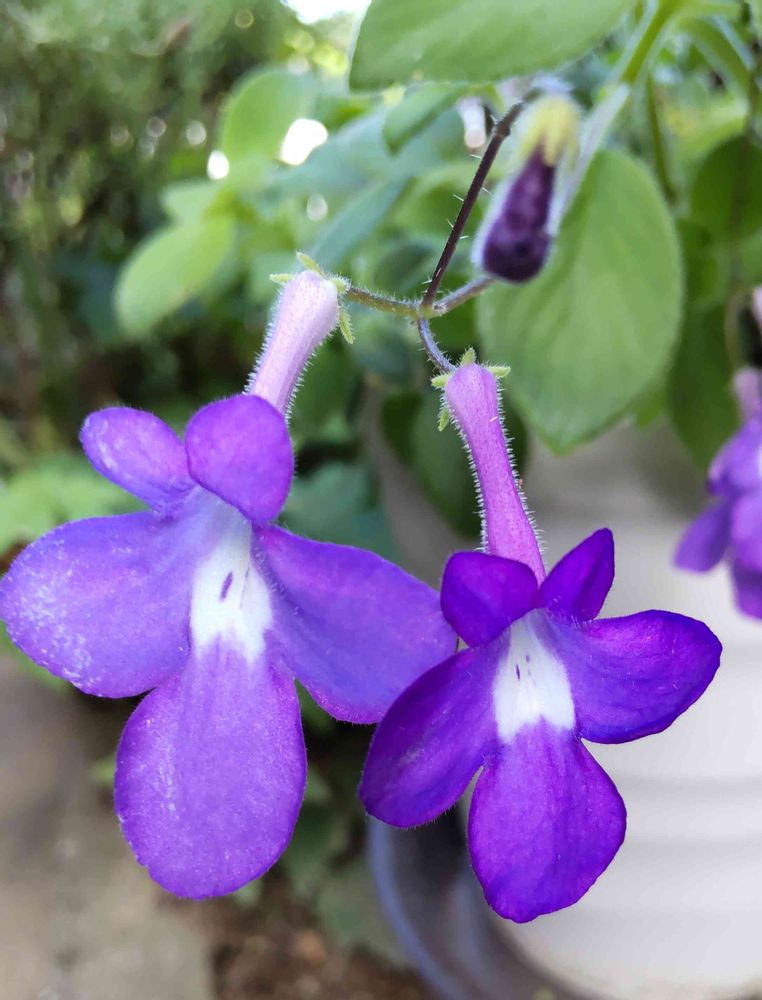 元々は、友人から挿し芽したのを頂いたのですが、その頃はもっと青々していたのに……このお花紫色ですよね~💜
