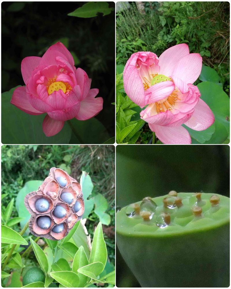 久しぶりに咲いた即悲蓮という蓮の花から実への変化の様子です。