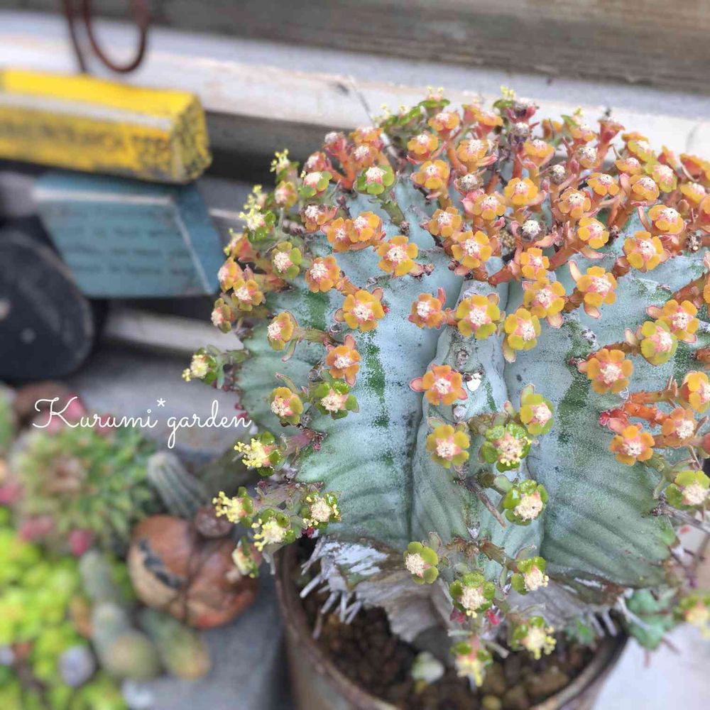 ユーフォルビアのお花が咲くとこんな感じだよ~それにしてもお花が沢山でびっくりしたよ♡(๑′ฅฅ‵๑)