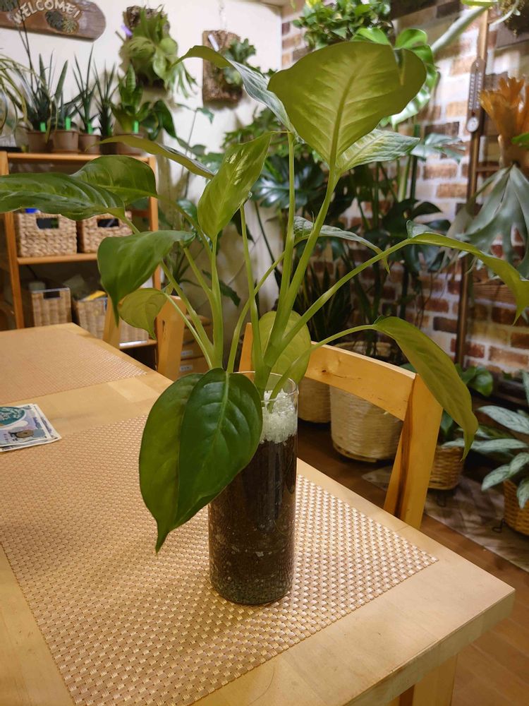 剪定したディフェンバキアですが、水耕してたらあっという間に根がグングンのび太wのでハイドロカルチャに仕立てました✌️😄✨