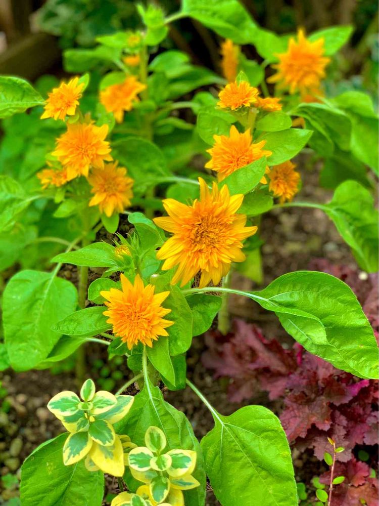 タネから育てたミニひまわり🌻ちーくまくん✧︎*。フンワリ小さな花がポンポンと咲いてくれて…毎日和んでます❀.(*´▽`*)❀.