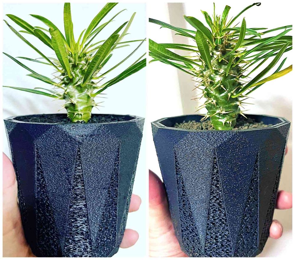 真夏の直射日光でも全く葉焼けしないラメリーと比べて、葉っぱが焼けてボロボロなんだけど、塊根部はかっこよくなりました🤔笑
