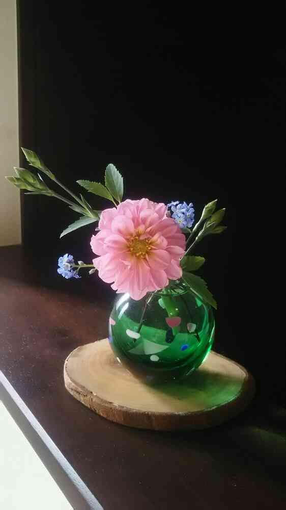 お庭のダリアと忘れな草で一輪挿し♪