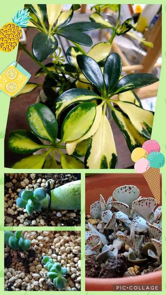 シェフレラはカポックともいうのですね😃この苗には🏷シェフレラと名札がついています〜😊斑入りが可愛いです〜!斑入りのシェフレラは少ししか売ってなかったので、出逢えて良かったです🥰