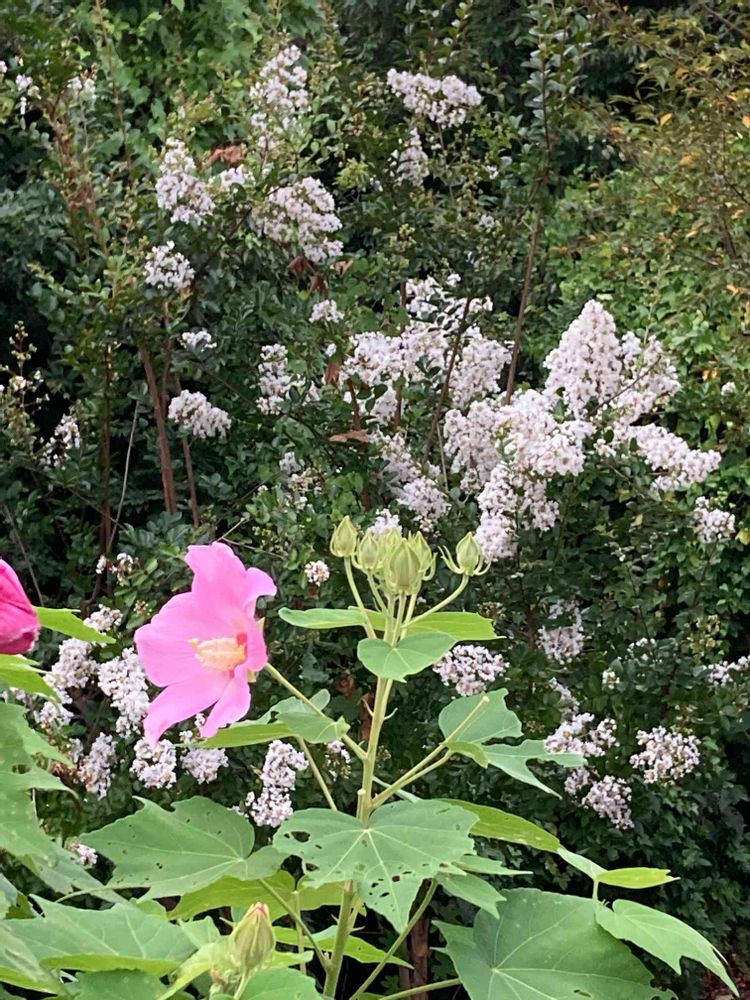 お散歩中のフヨウとサルスベリ。