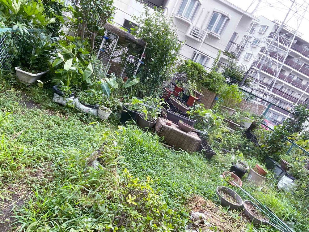 2022ー8ー14(日)☁️曇り☁️ 昨日 台風8号 伊豆半島PM5時ころ上陸して東北から太平洋方向への通り道🫣😰🪴の今朝の庭 🪴🪴🪴🪴🪴🪴🪴🪴🪴入れるだけの鉢植えはベランダ避難です。