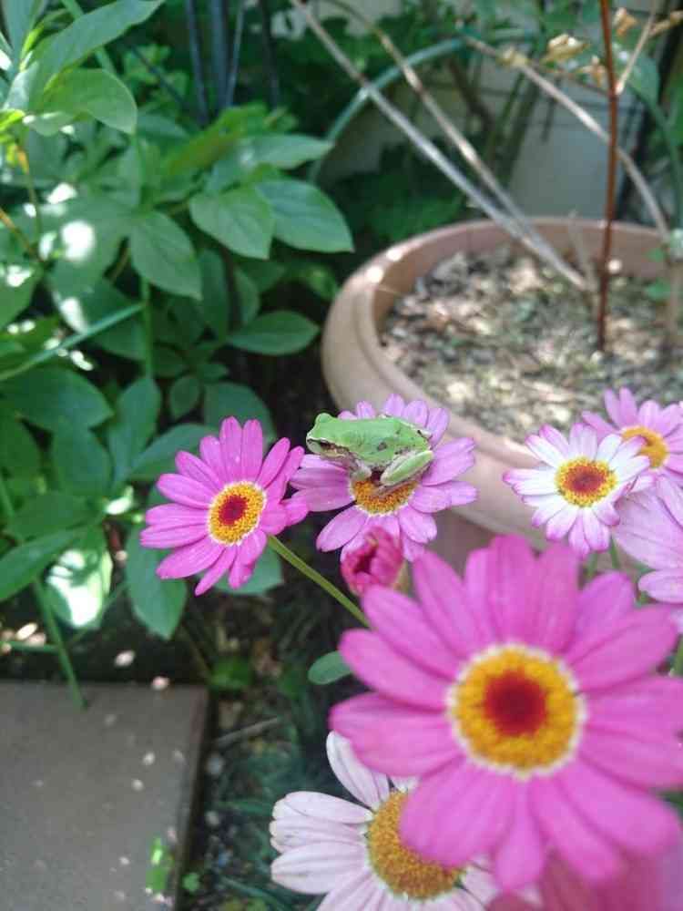 お花の上でのびのびと🤗💗ね🌼🐸♚♔🌼