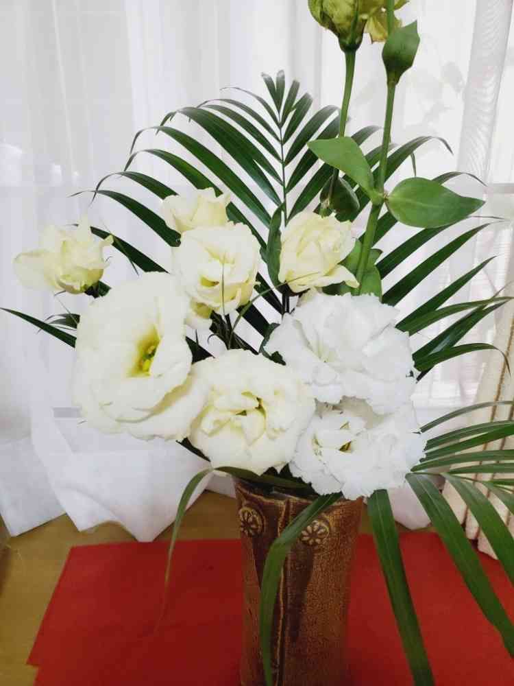 近所にテイクアウトのお店がオープンされて二日経ってから覗いて終わりがけのお花を頂きました。
