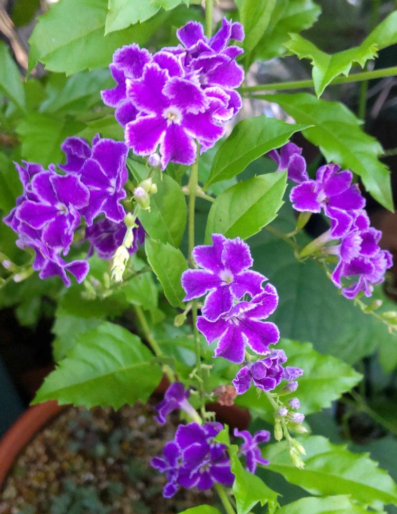 デュランタ宝塚さんが咲いてくれました😻💚🤍💜