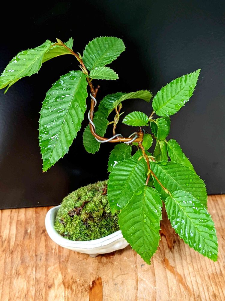 クマシデミニ盆栽😆一年目の植替で浅い鑑賞鉢に🤩