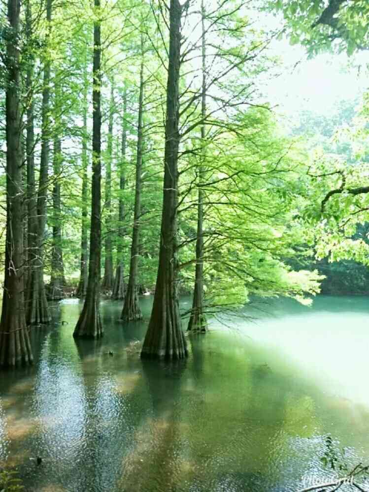 朝の爽やかな空気と木々の間から差し込む光が幻想的な雰囲気でした😊
