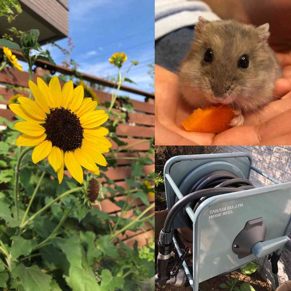 ひまわりの種、取れたら大喜び😆の🐹子がいるんですが。。。この🌻、小輪多花に改良されてて、種が出来ないんです😲