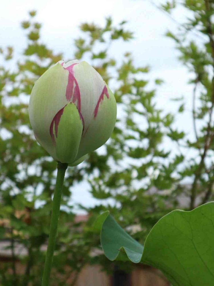 この蓮のうしろにある鉢植えのコハウチワカエデが、