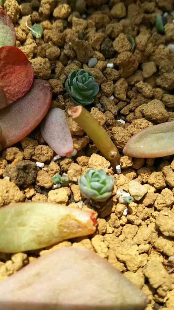 ぽいぽい鉢チェックしてたら、去年花を咲かせて枯れた子持ち蓮華の子供が目覚めてた✨