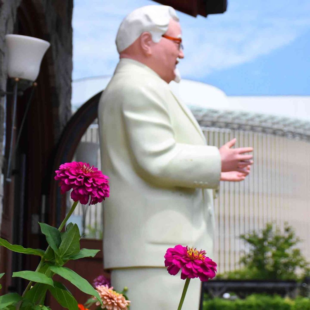 【研究学園の花々】2022年7月31日、ケンタッキーフライドチキンの入口にジニアがカラフルに咲いていました!