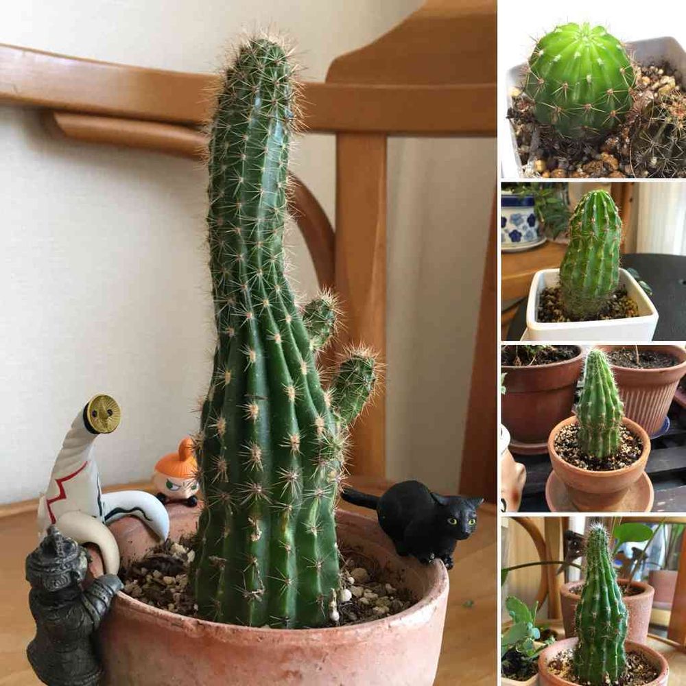 我が家のサボテン、金盛丸のキンちゃん。もらった時はまん丸可愛かったのに、ニョロニョロ伸びて…この先どうなる??