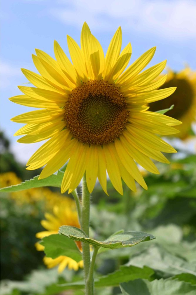 青空に優しいイエローのひまわりが綺麗に咲いています😊