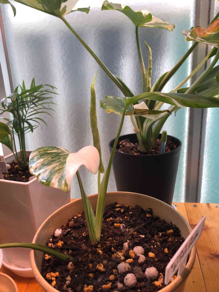 斑入りモンステラ、復活して3枚目開きますなぁ〜^_^いい傾向だ^_^