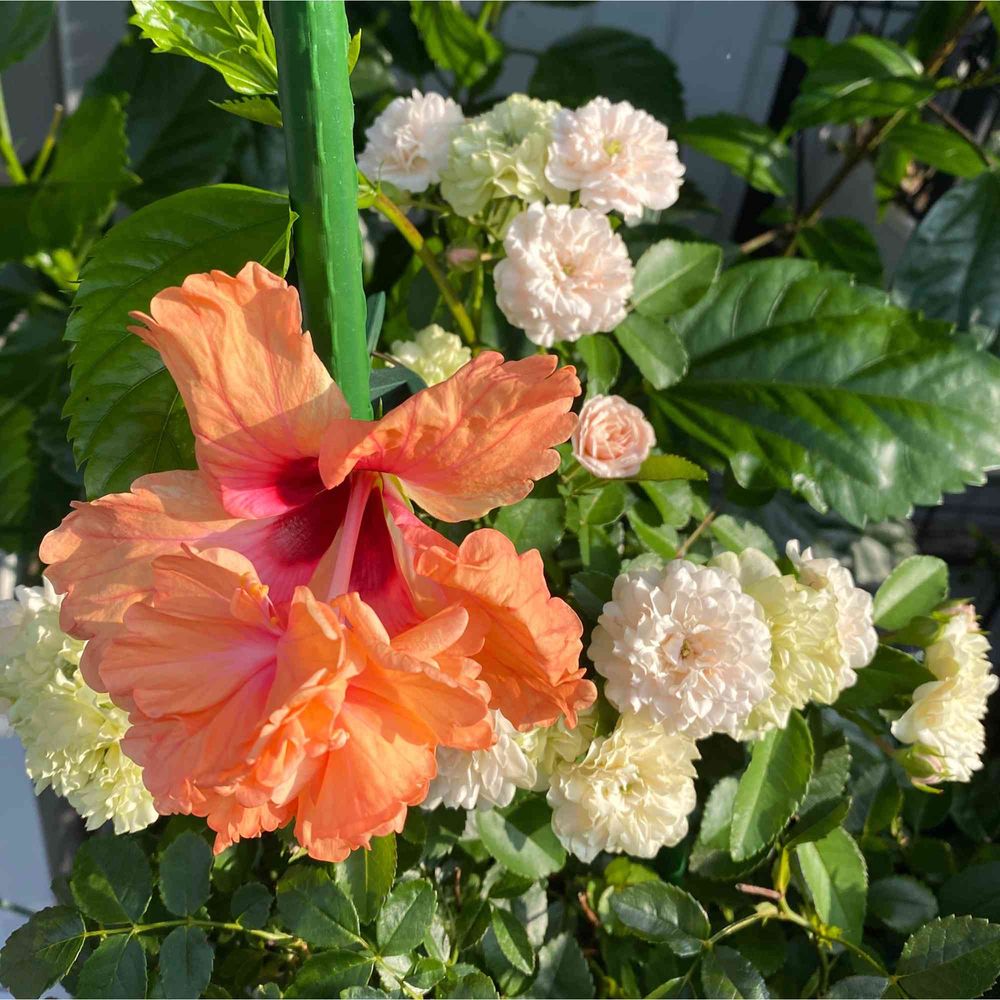 ハイビスカス,ミニバラ・グリーンアイス,鉢植えの投稿画像