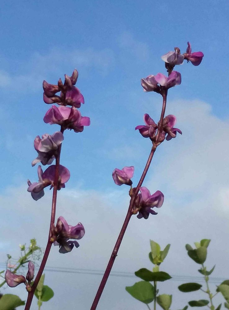 蔓ばかり伸びていますが やっとお花が咲きました🎶 朝 青空をバックに撮れました😊