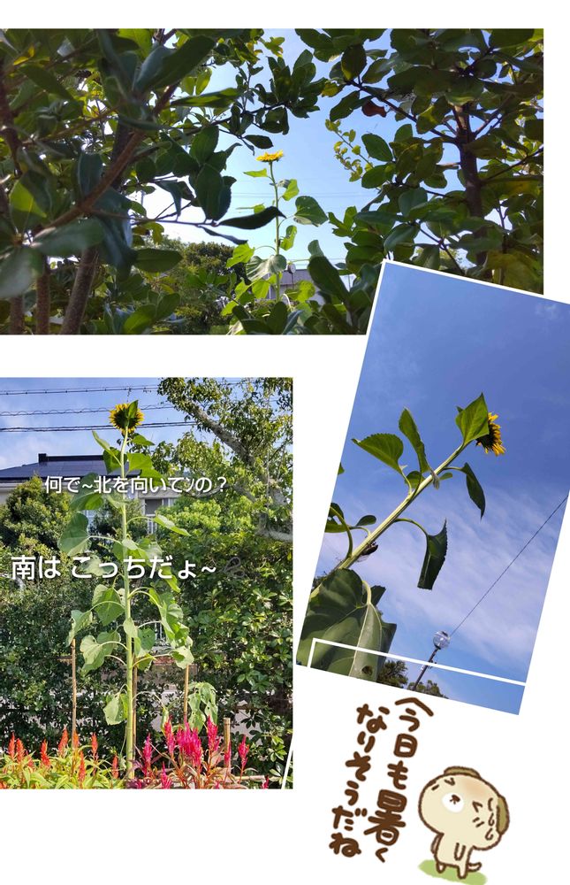 我が家には この子よりも ずっと先輩の 🌻🌿のっぽさんが 南の方を見ています🤗