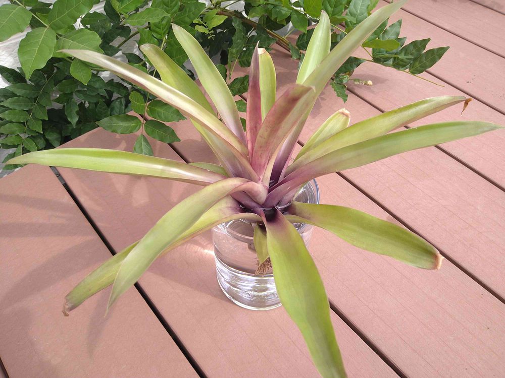 屋内で水にずっとつけるようになってから葉先枯れが出なくなった、根がグングン出た、葉の展開もスムーズと良さそうだったものの、葉色が薄くなっていき、葉自体も弱そう、株元にもともとあった傷に水中でもフワフワとカビ?の様な物が付着するが特に悪さはなさそうといった状況でした(´ε`;)微妙…