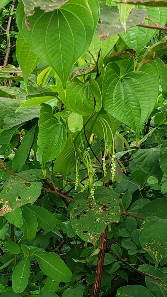 この葉っぱ山芋なのかな~?イガイガのムカゴが付いてたけど、あんまり美味しくは無いっぽい。種類が違うんだろうか?