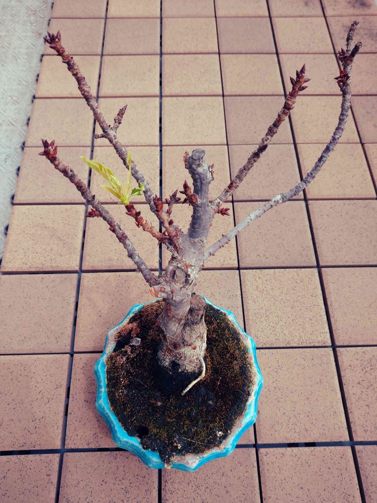 旭山(桜)の鉢植え。十数年前に我が家に仲間入り。7月に落葉してしまい、夏を越せなかったかと心配していたら、芽吹いてきました❗初めてです。どうやら6月の猛暑の後、涼しくなり、秋だと勘違いして落葉?まだ夏だと気づいたか?気温変動に困ってるみたいです。