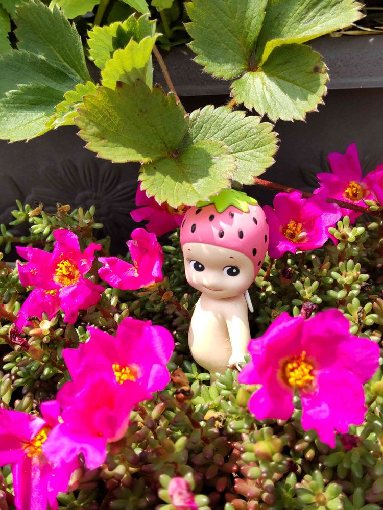 撮影📱している所に ちょうどいちごの葉っぱ🍀があったので、🍓ソニエンくんの日傘になって少しは 役立ったかな〜(´▽`*)アハハ
